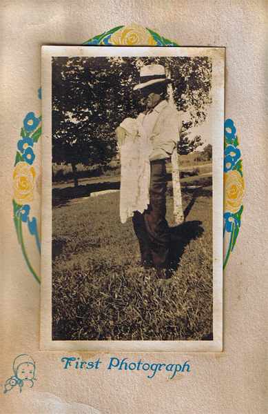 Lizzie DeCoster (mother) and baby Richard at 2 weeks (closeup from baby book)