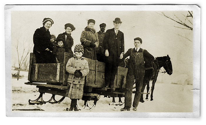 Victor Felix and Martha E (Conroy) DeCoster with their children Jules, Lottie (Virginia), Cora, Renee and Mary.