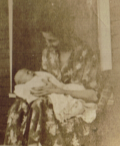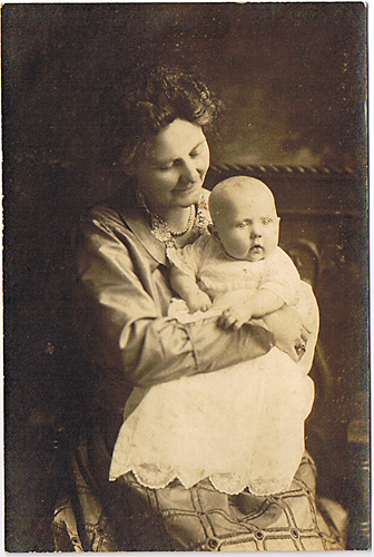 Lizzie DeCoster (mother) and baby Richard at 2 weeks (closeup from baby book)